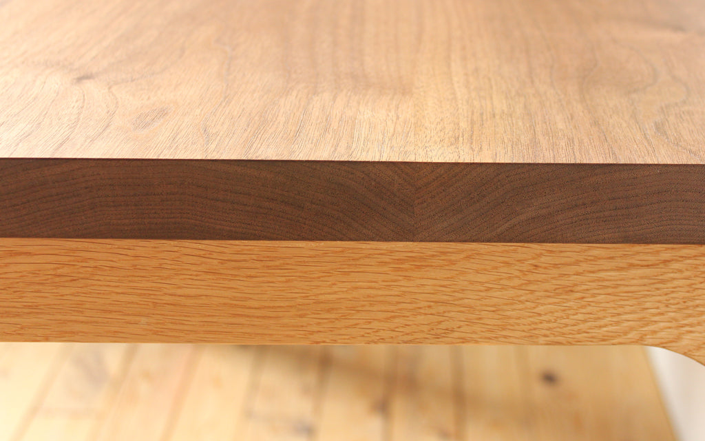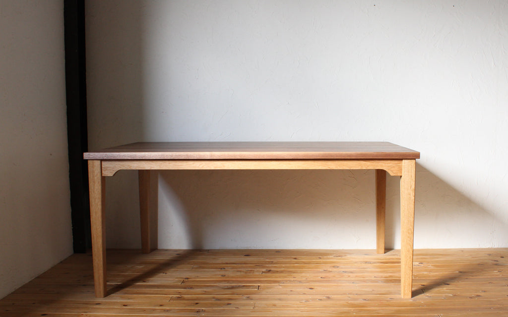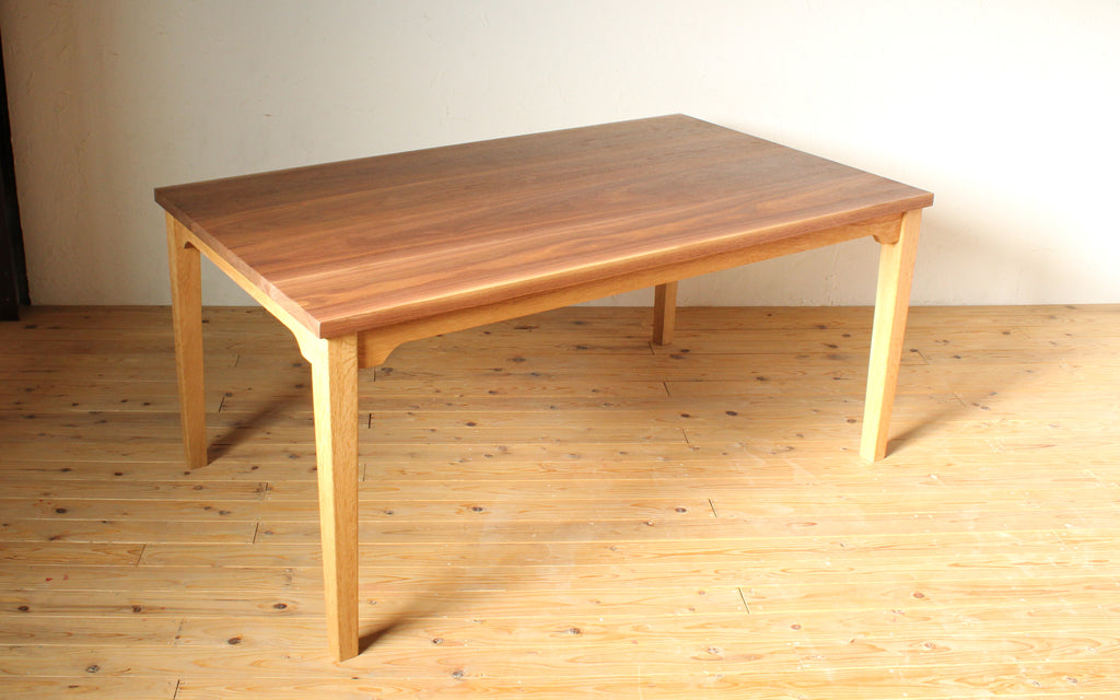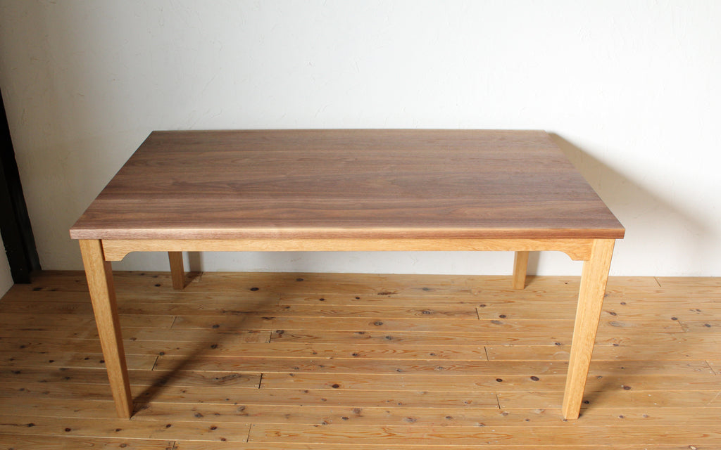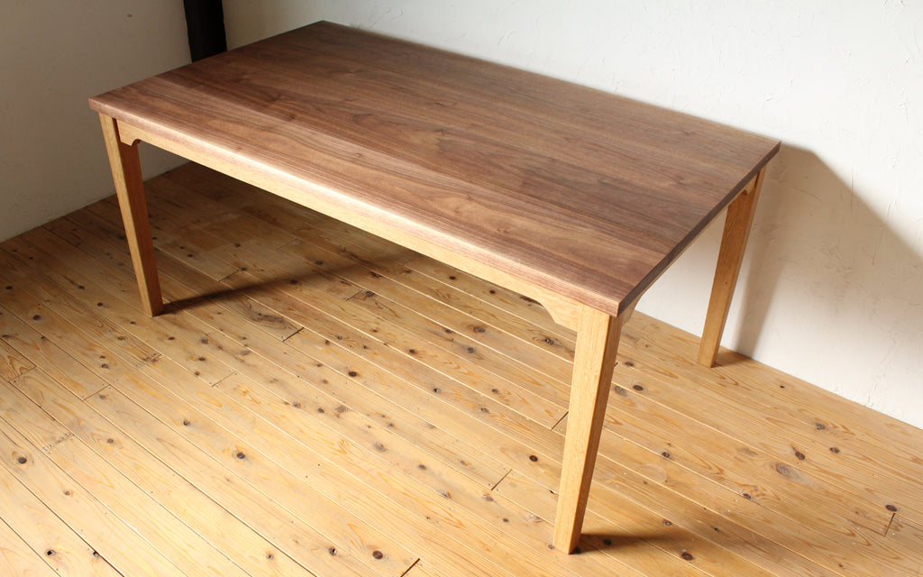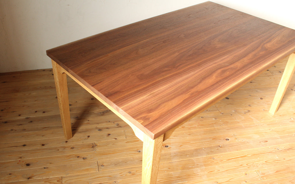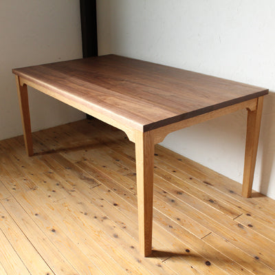 無垢ウォールナット材と無垢オーク材を組み合わせた贅沢ダイニングテーブル。