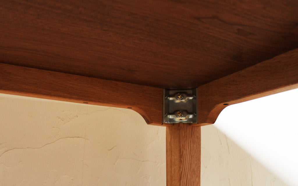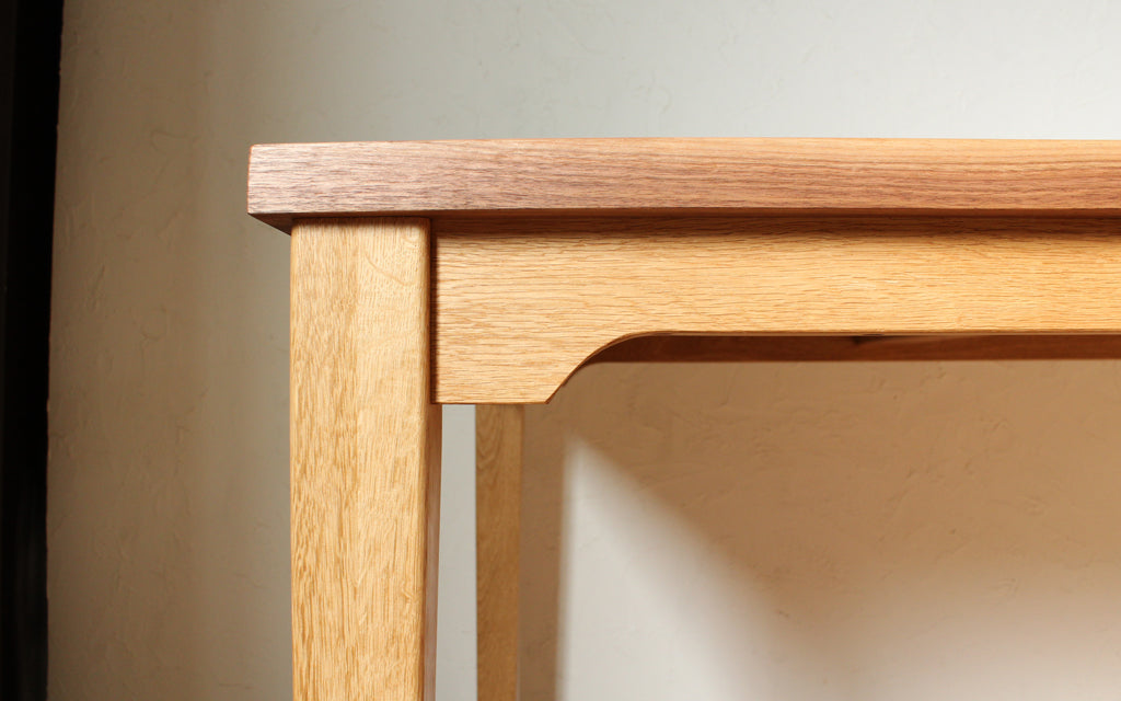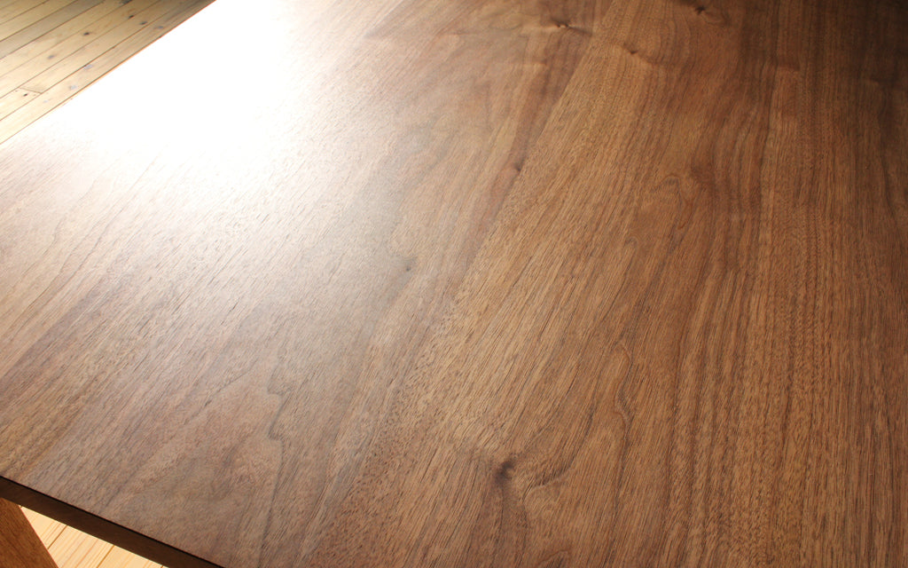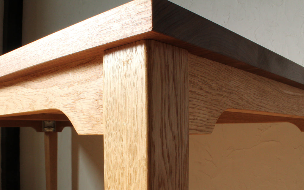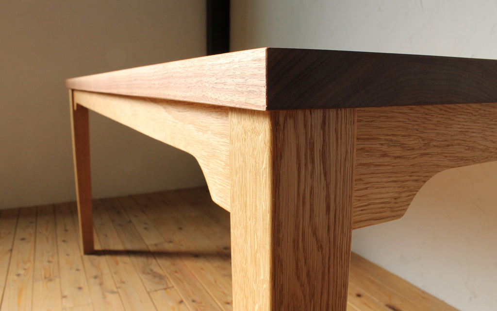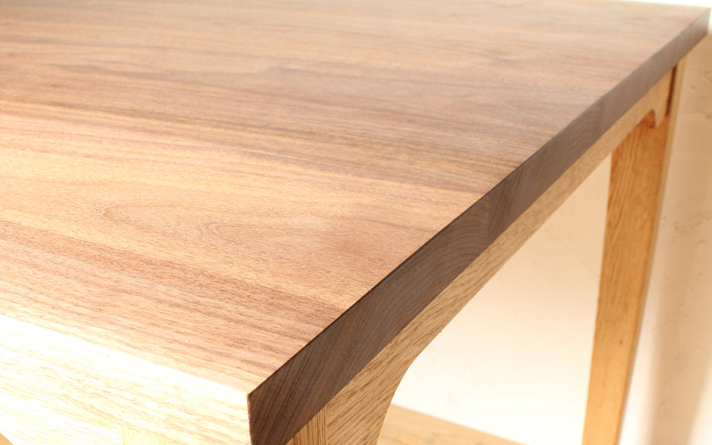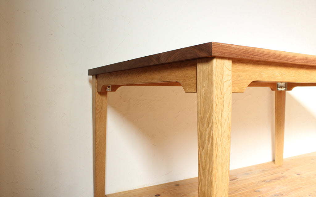 無垢ウォールナット材と無垢オーク材を組み合わせた贅沢ダイニングテーブル。
