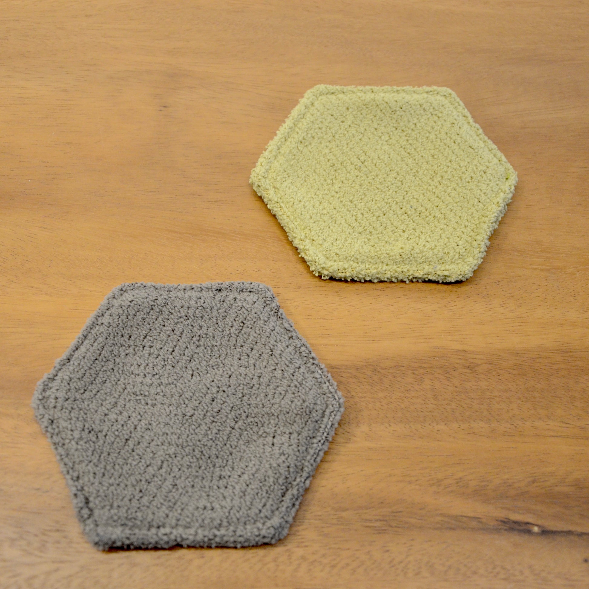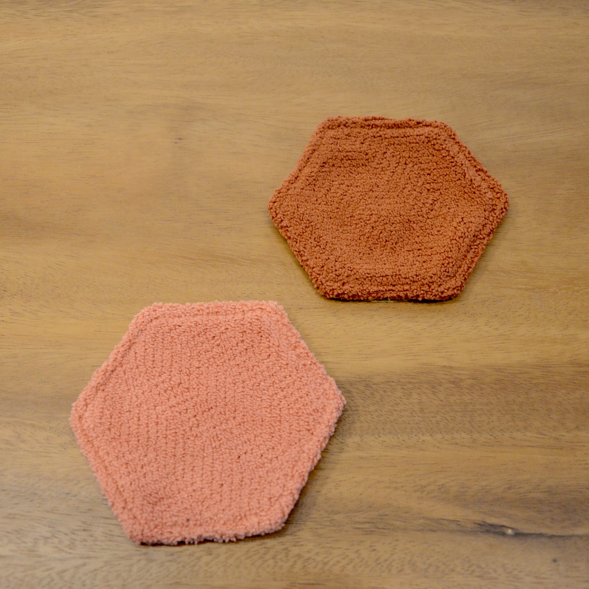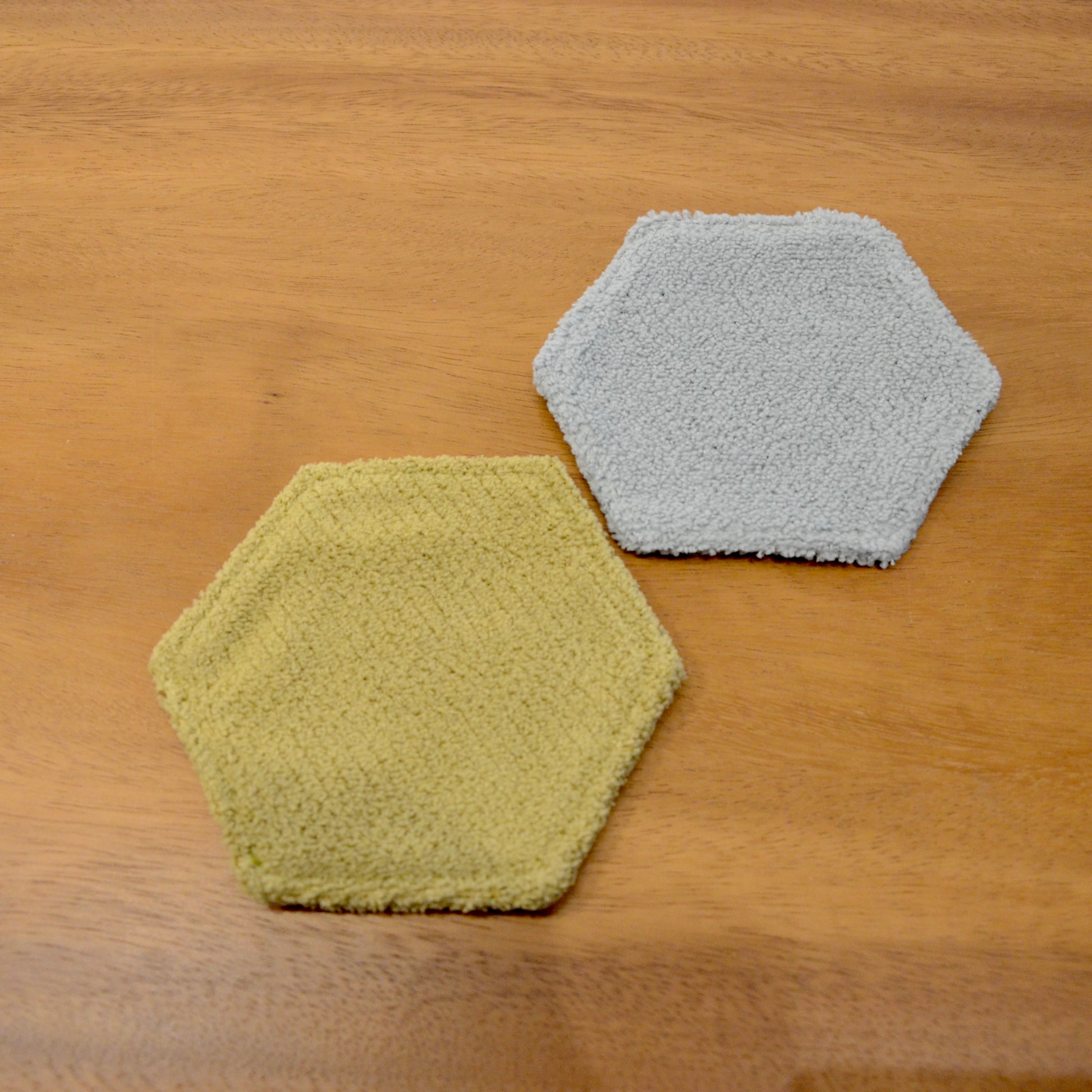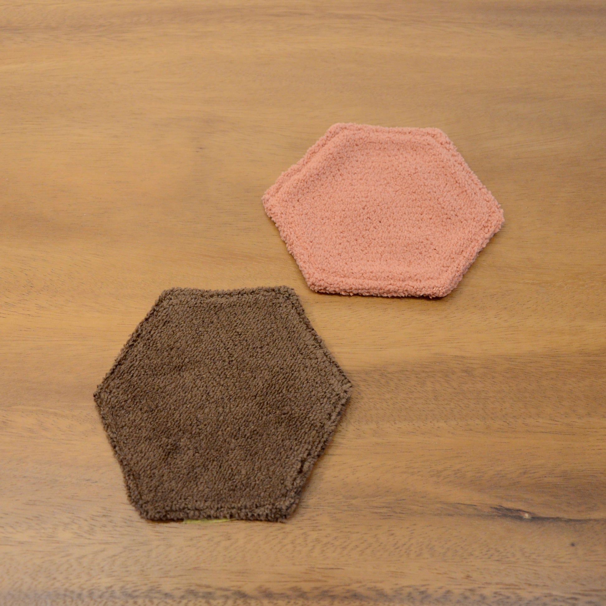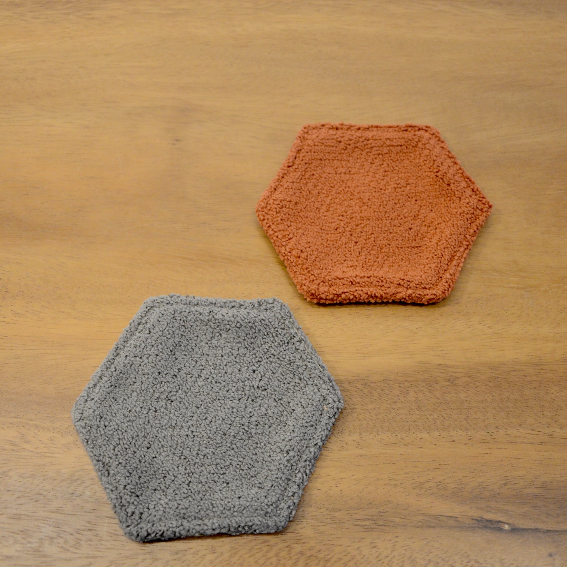 モンペスツールの座面部分と同じ柔らか〜い生地で出来ています。 裏面も同じ色の六角形のコースターです!暮らしにお好きな彩りを添えてみてくださいね。
