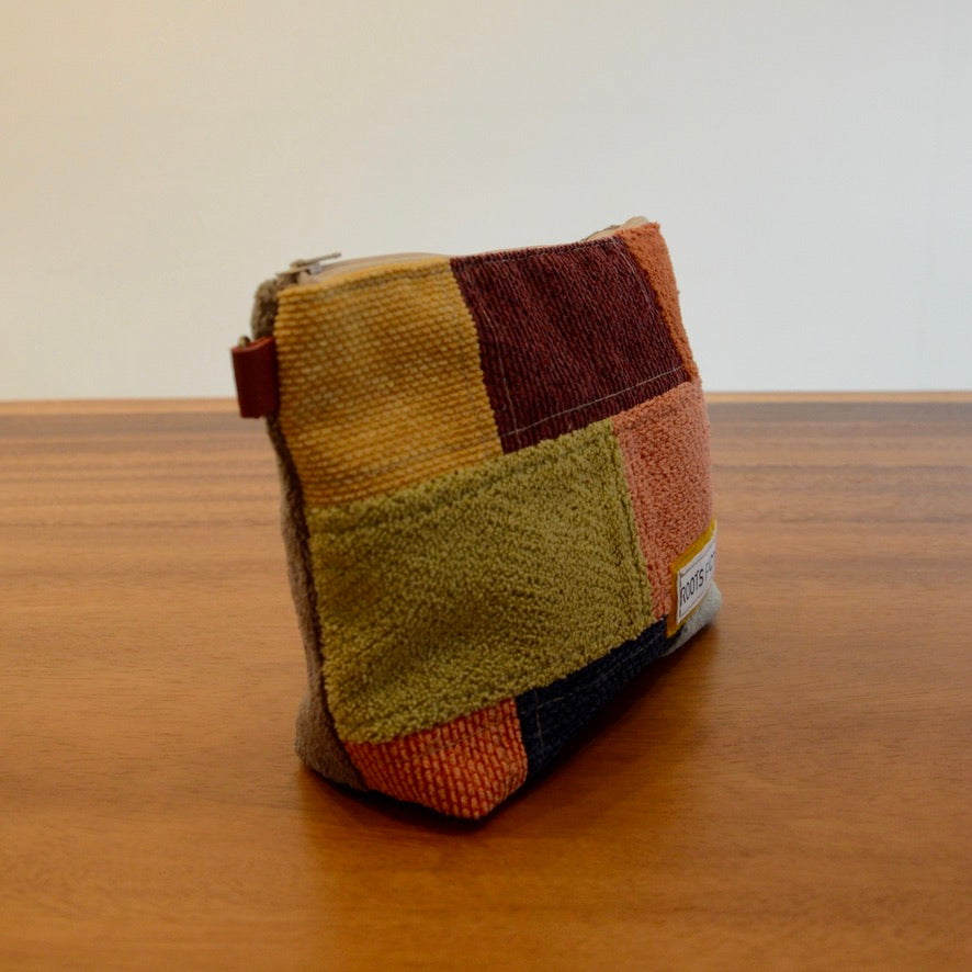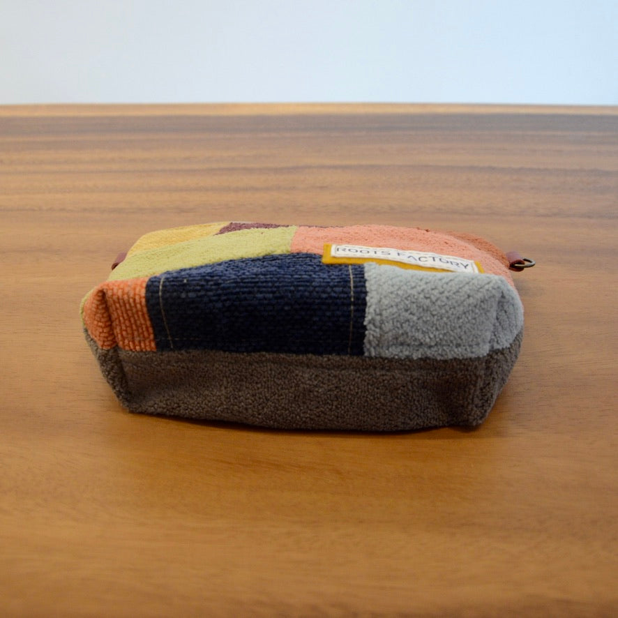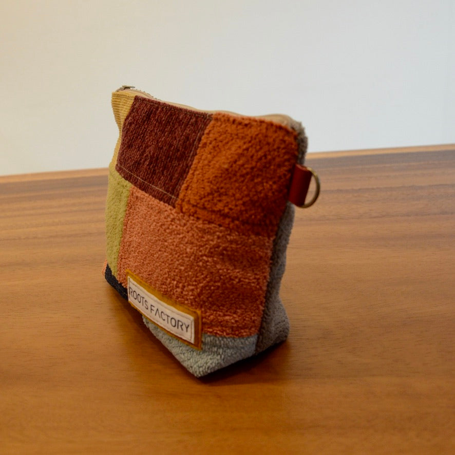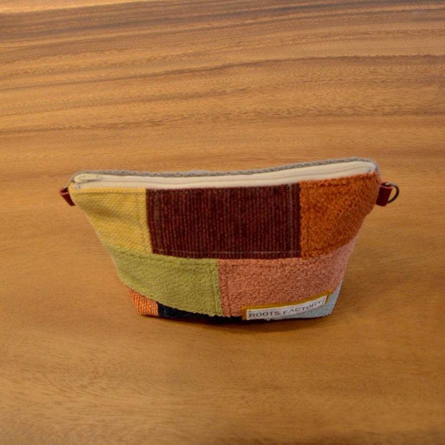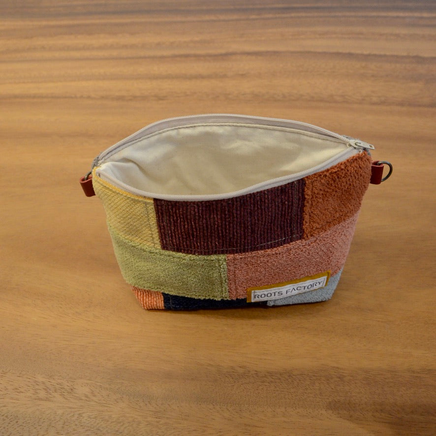 小物やコスメの収納にぴったりなポーチ。家具に使用されるしっかりした生地を使用しております。