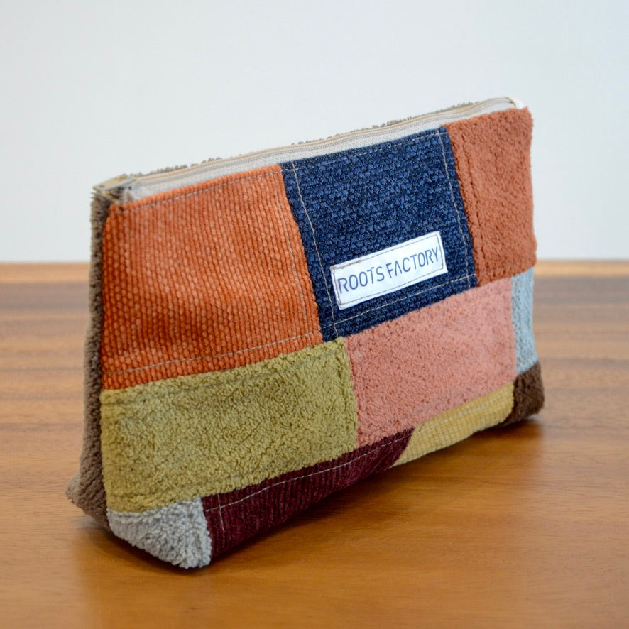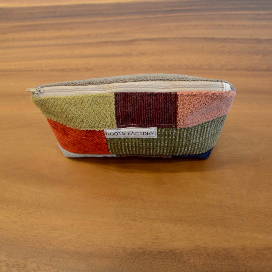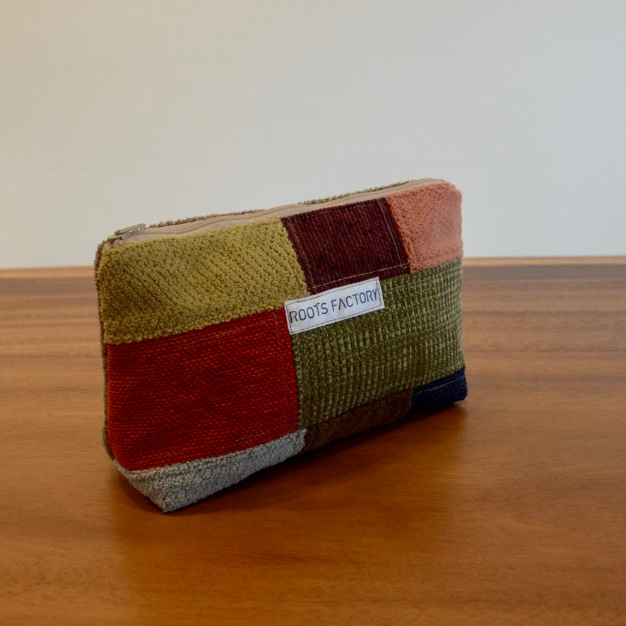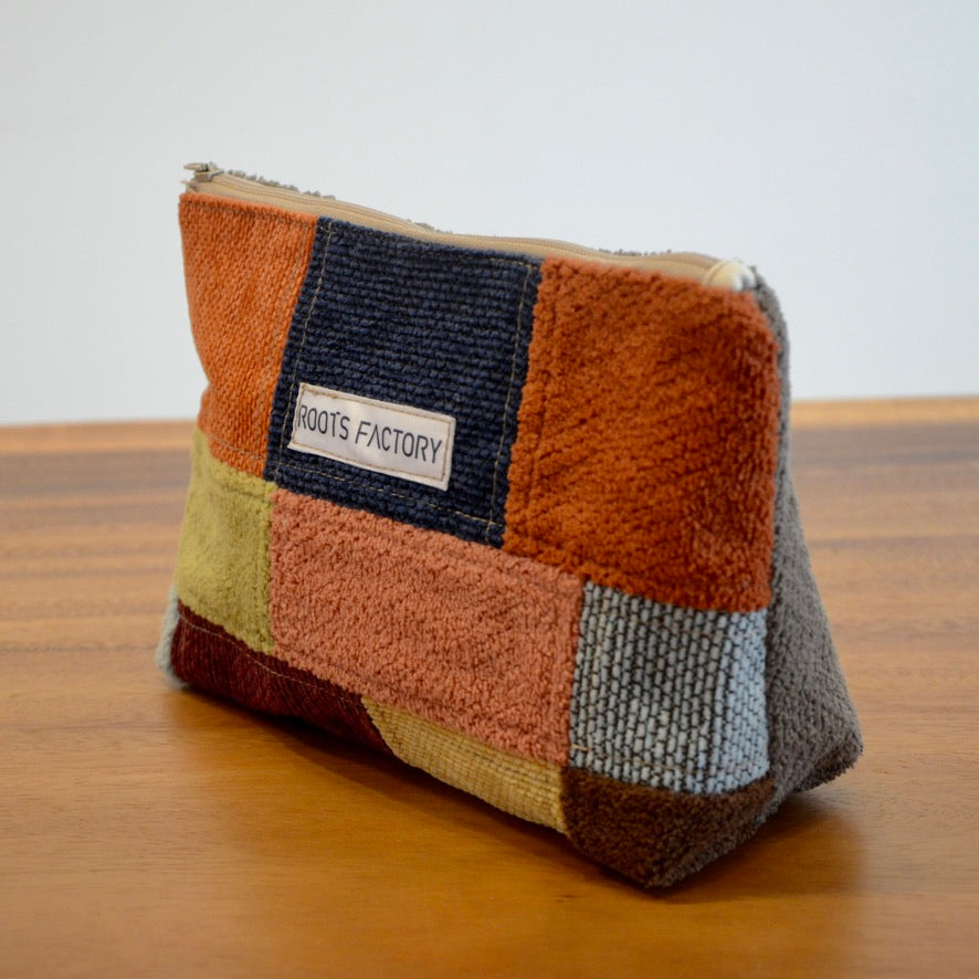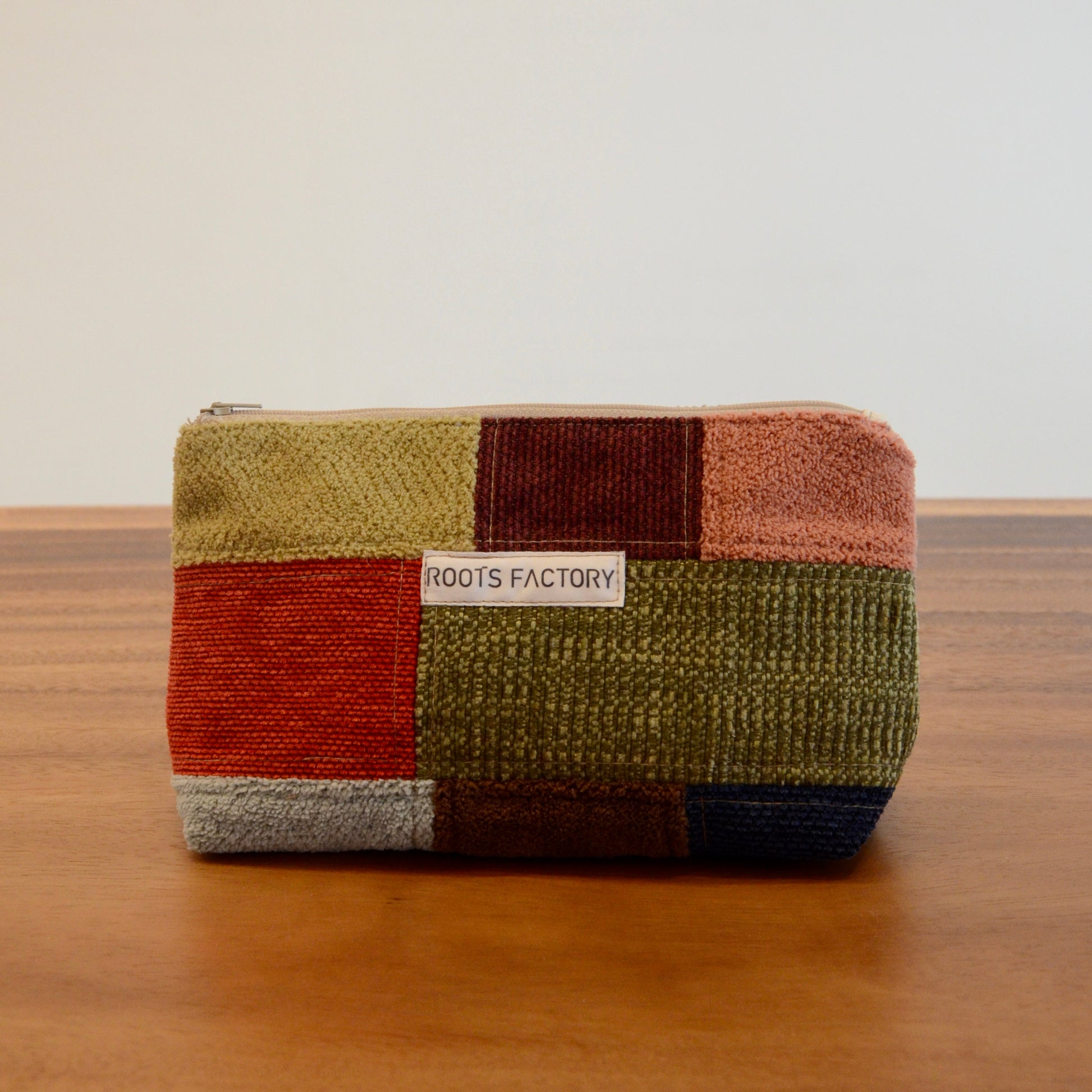小物やコスメの収納にぴったりなポーチ。家具に使用されるしっかりした生地を使用しております。