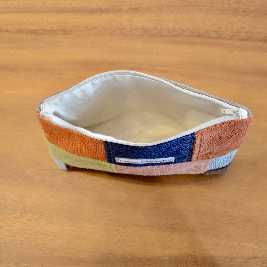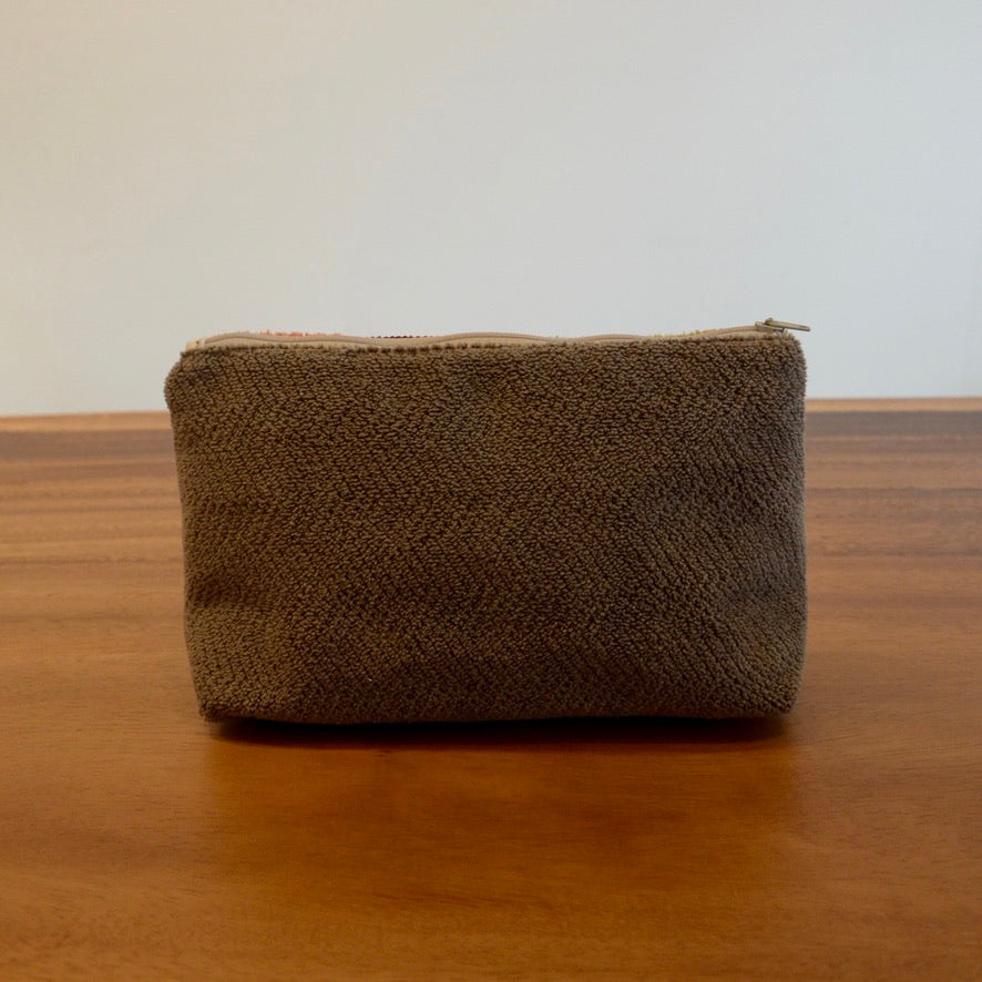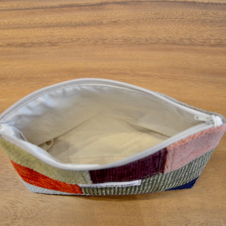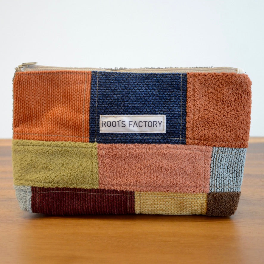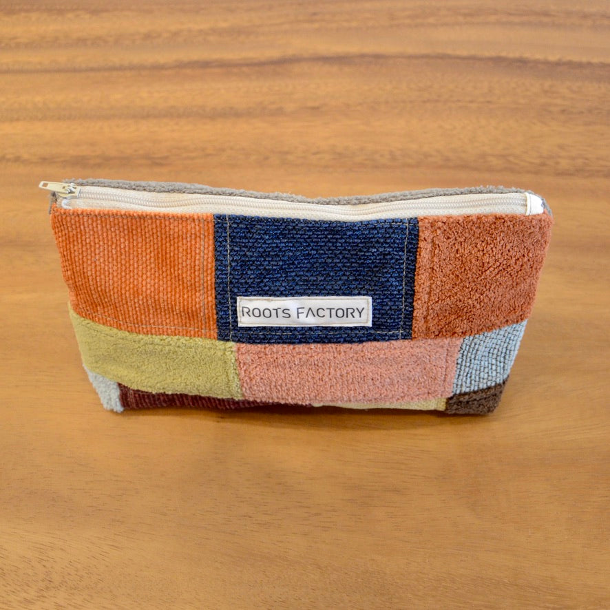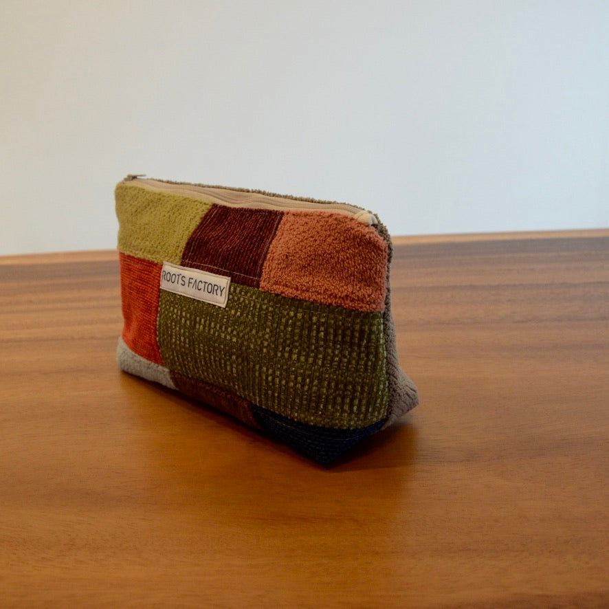小物やコスメの収納にぴったりなポーチ。家具に使用されるしっかりした生地を使用しております。