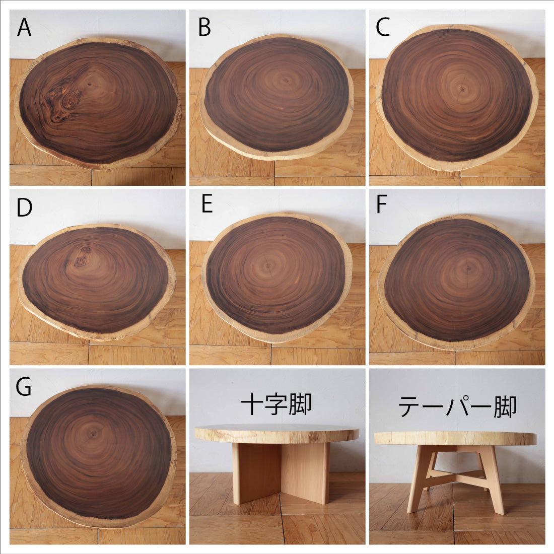 | サイズ | 天板 | 天板+十字脚 | 天板+テーパー脚 | |